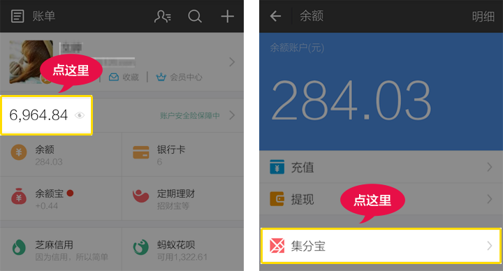 手机上登录支付宝APP,点击 支付宝余额—>集分宝,即可查看集分宝数及明细。