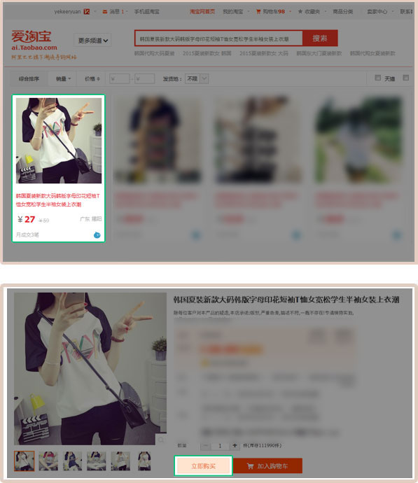 Step 3 ,搜索后进入淘宝页面找到要买的商品,正常下单